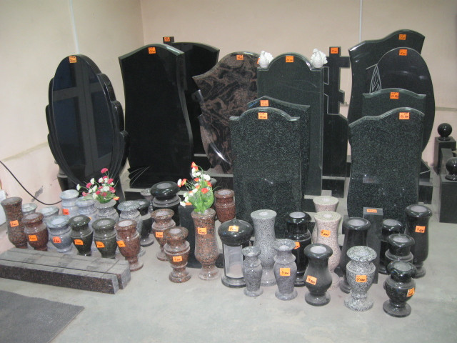 Представлены модели памятников из гранита различных цветов